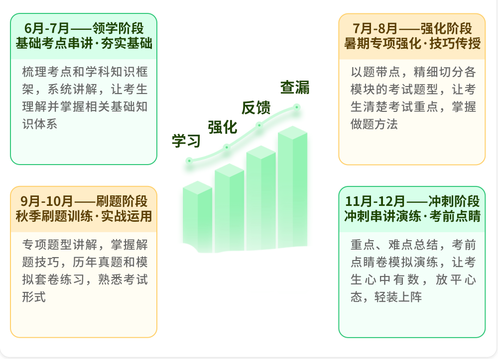 定制个性化半年备考复 习计划,明确重点,全 身心投入复习